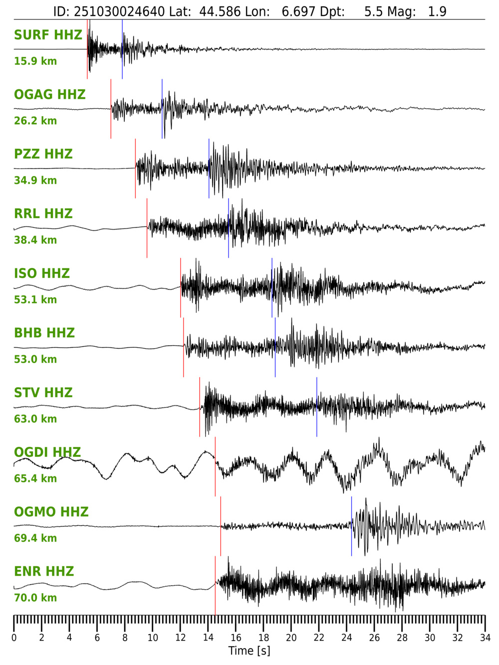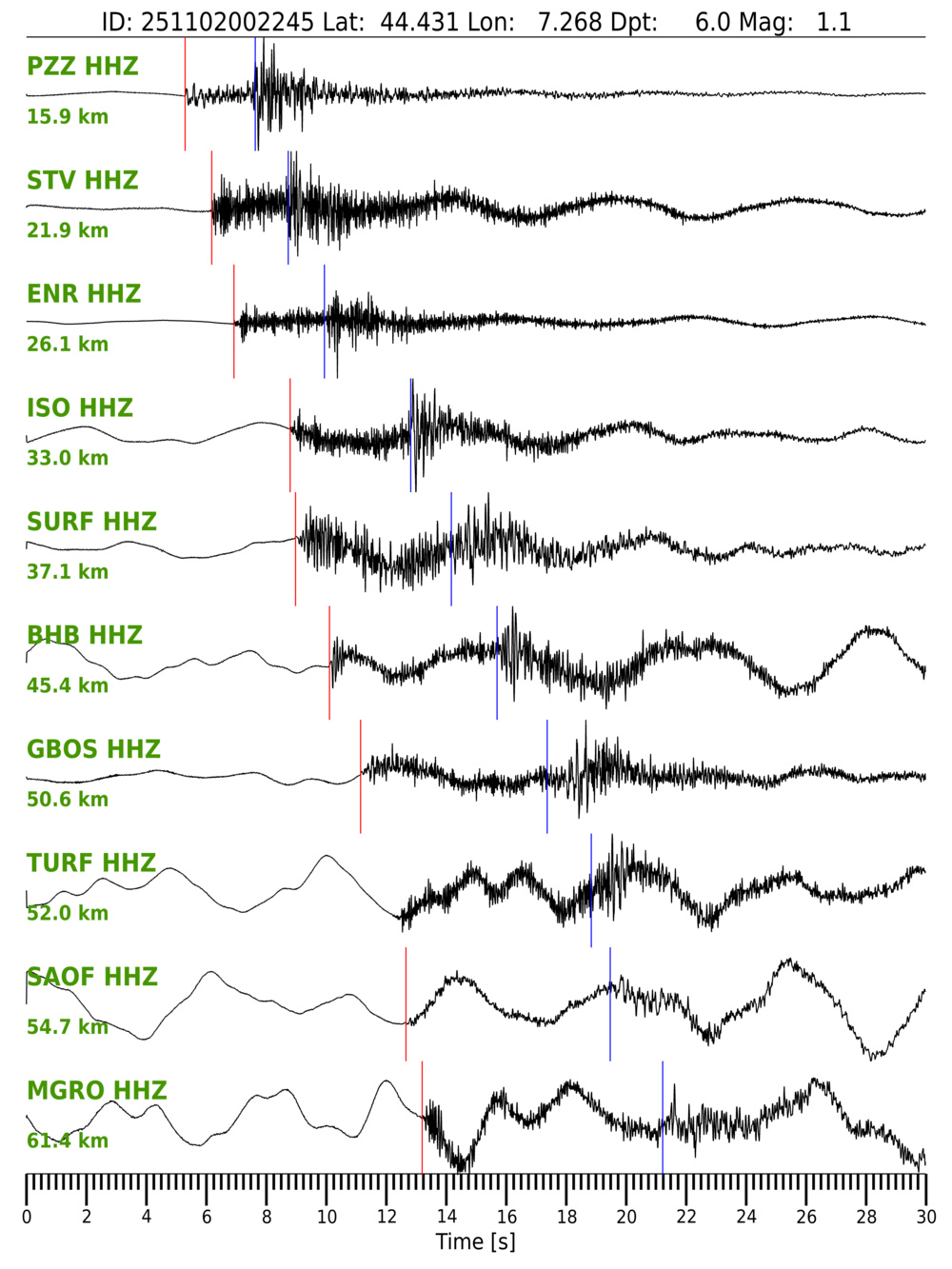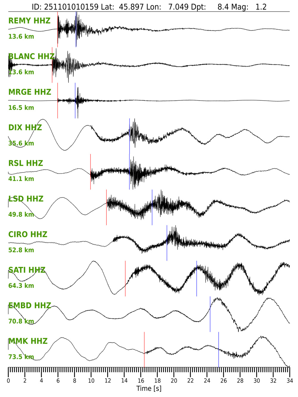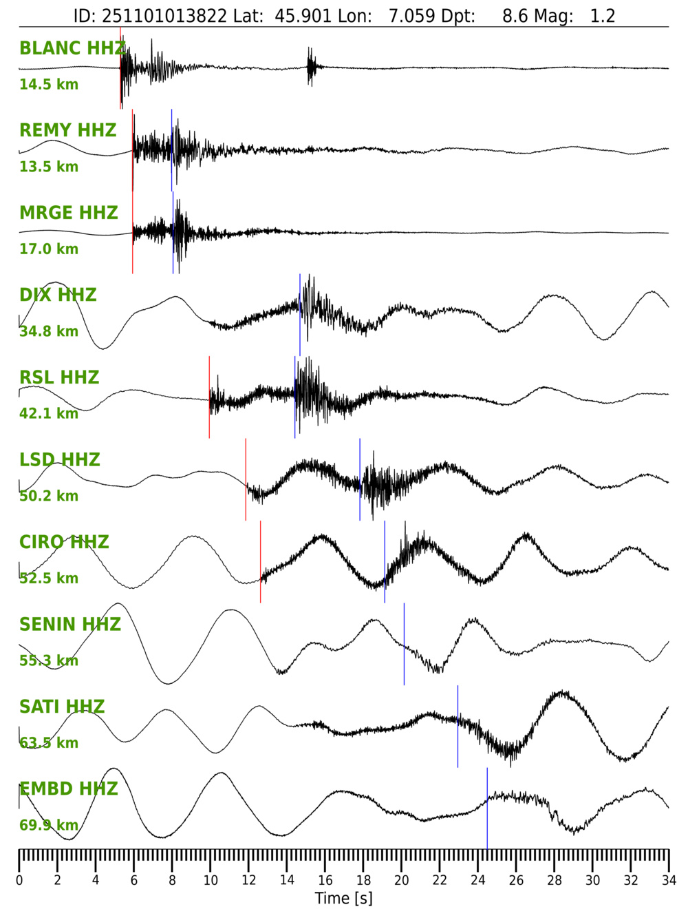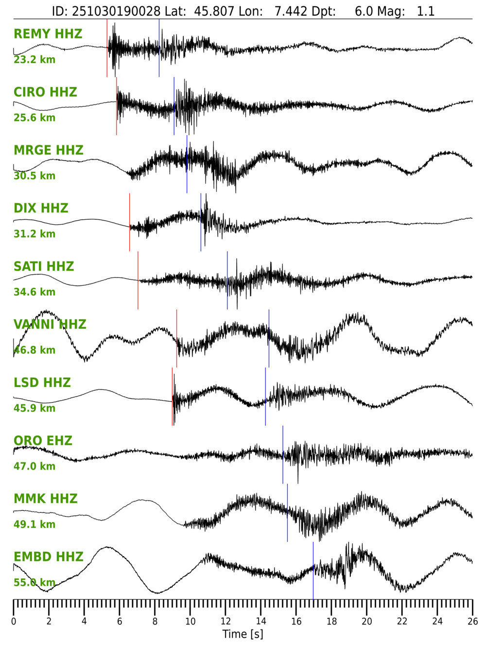 CURRENT SELECTION: FROM: 2025 October 26 - TO: 2025 November 02 ; LAT: 41.500 - 47.000 ; LON: 5.750 - 12.250 ; DEPTH: -5.0 - 200.0 ; MAG.: -1.0 - 10.0