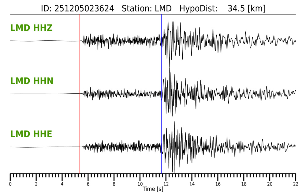 Erh: 3.5 km, Erz: 1.3 km, Nf: 15, Gap: 250°, Rms: 0.148 s