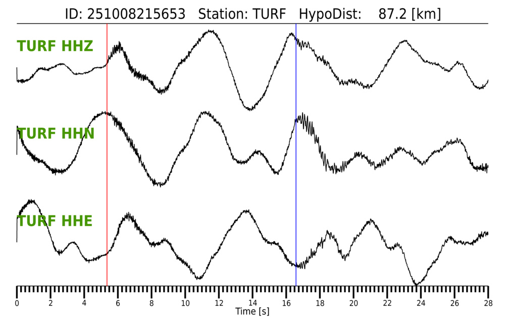 Erh: 1.2 km, Erz: 1 km, Nf: 11, Gap: 175°, Rms: 0.108 s