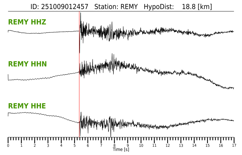 Erh: 3 km, Erz: 4.8 km, Nf: 12, Gap: 204°, Rms: 0.329 s