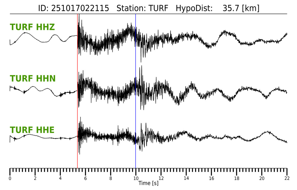 Erh: 1.1 km, Erz: 0.9 km, Nf: 24, Gap: 77°, Rms: 0.235 s