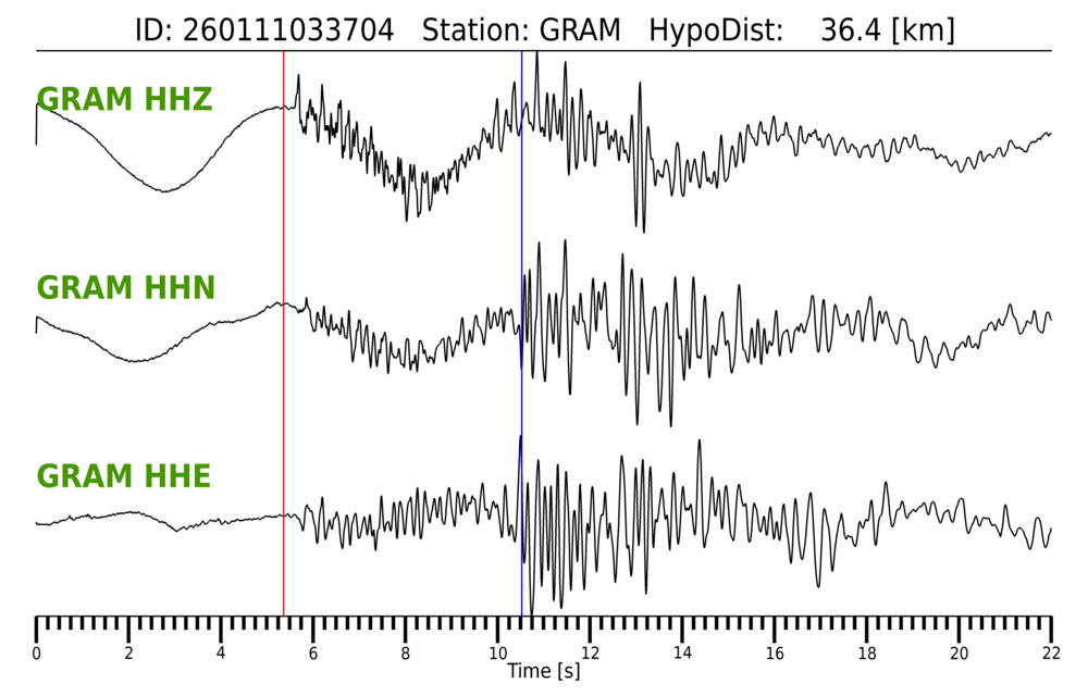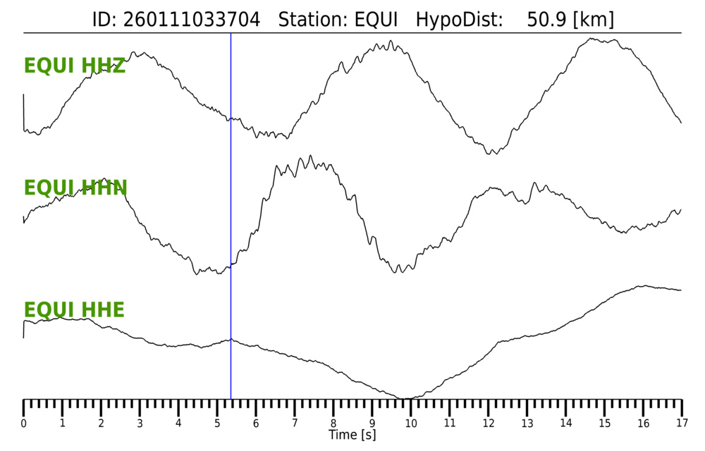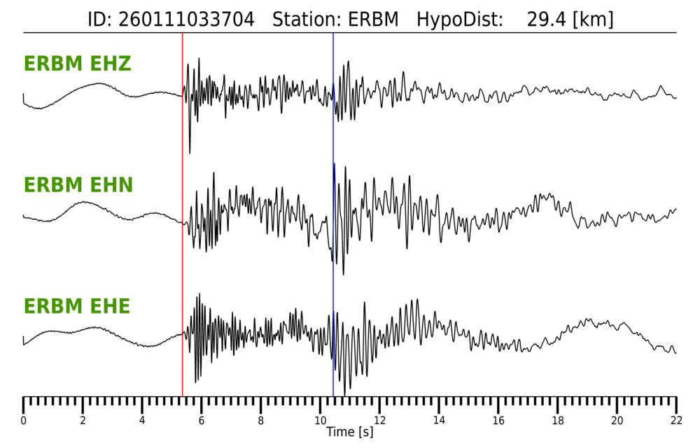 Erh: 2 km, Erz: 1.5 km, Nf: 11, Gap: 210°, Rms: 0.12 s
