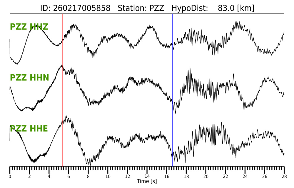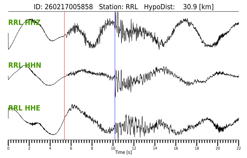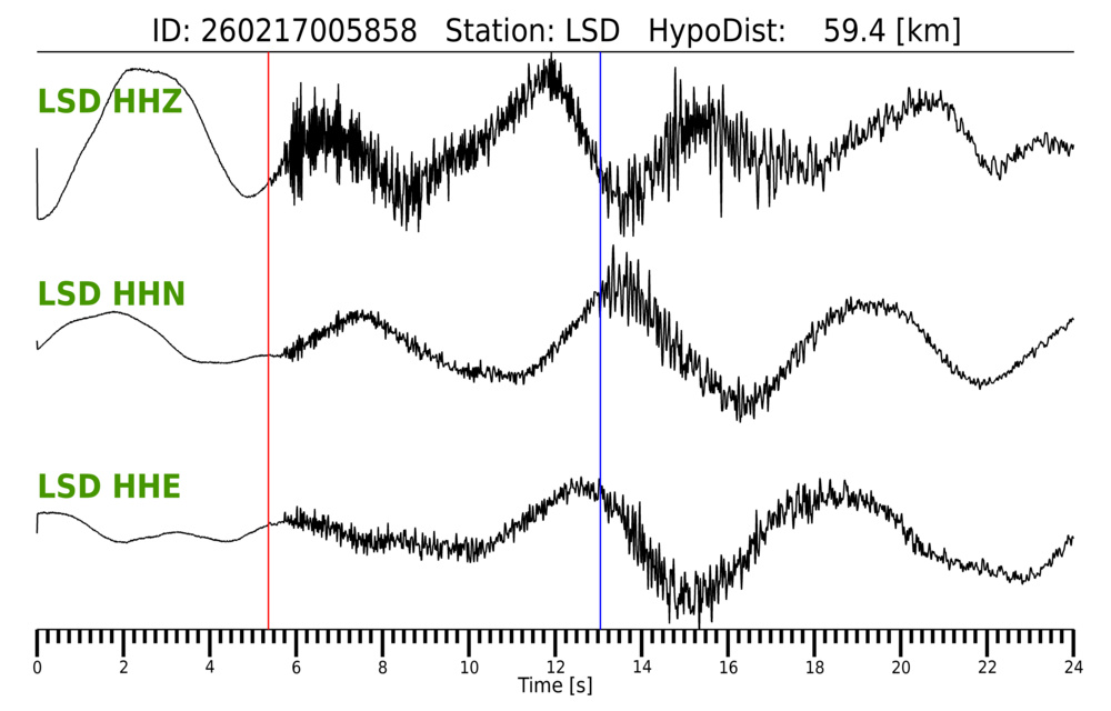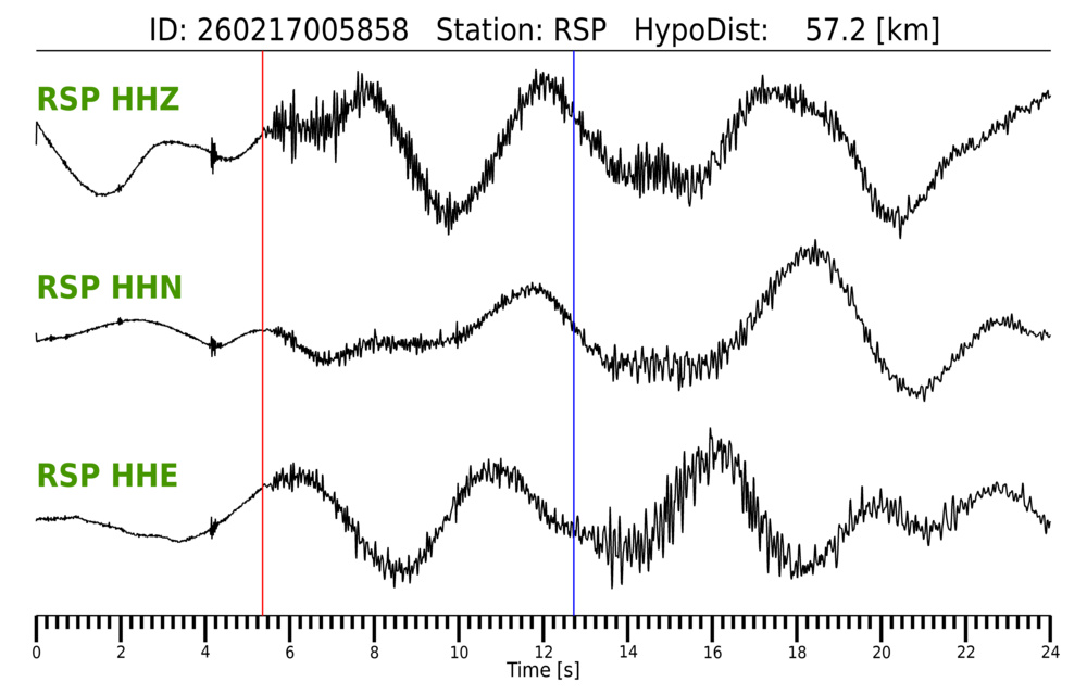 Erh: 1.3 km, Erz: 1.8 km, Nf: 13, Gap: 230°, Rms: 0.18 s