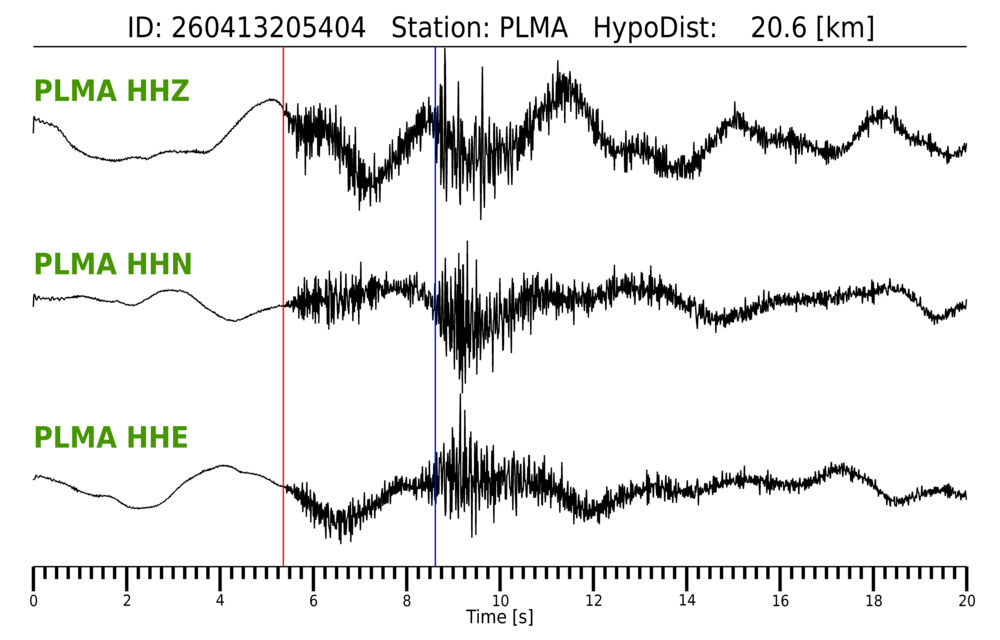 Erh: 3.5 km, Erz: 3.4 km, Nf: 13, Gap: 138°, Rms: 0.264 s