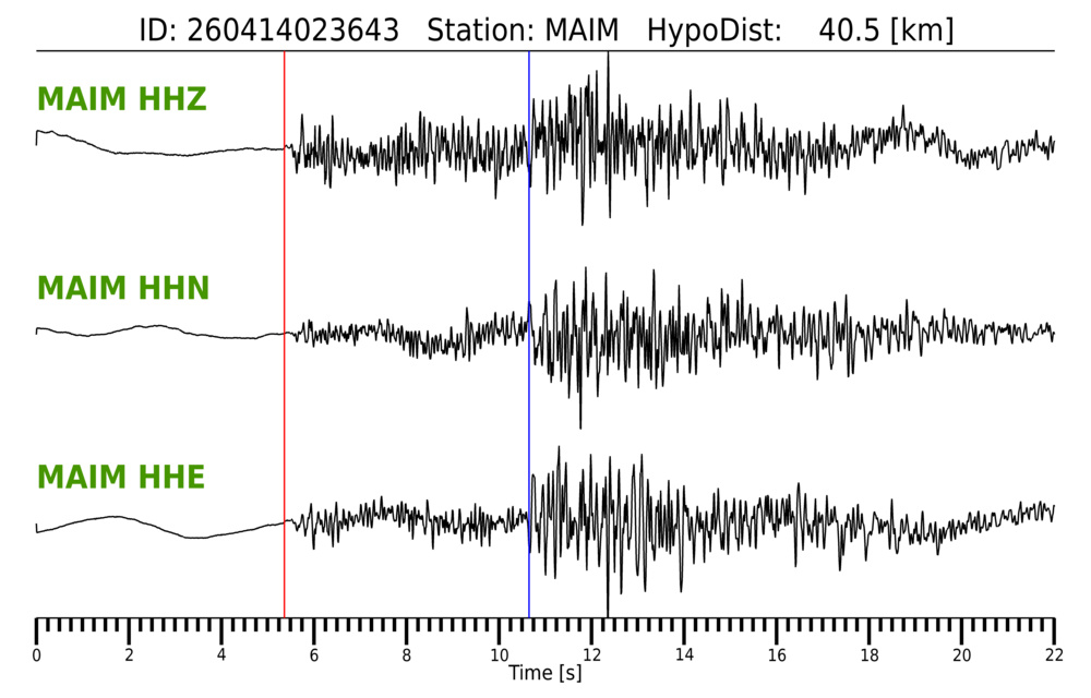 Erh: 2 km, Erz: 2.8 km, Nf: 22, Gap: 199°, Rms: 0.33 s