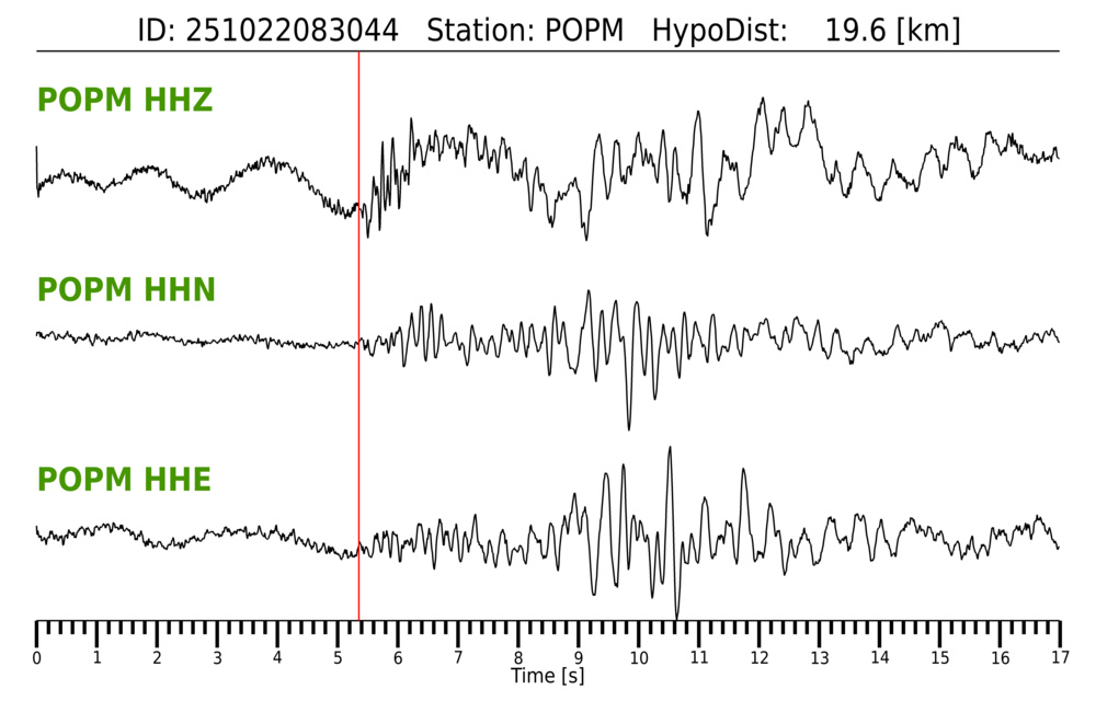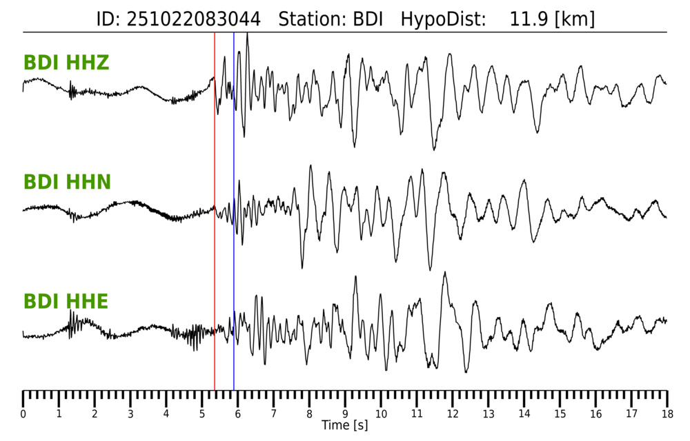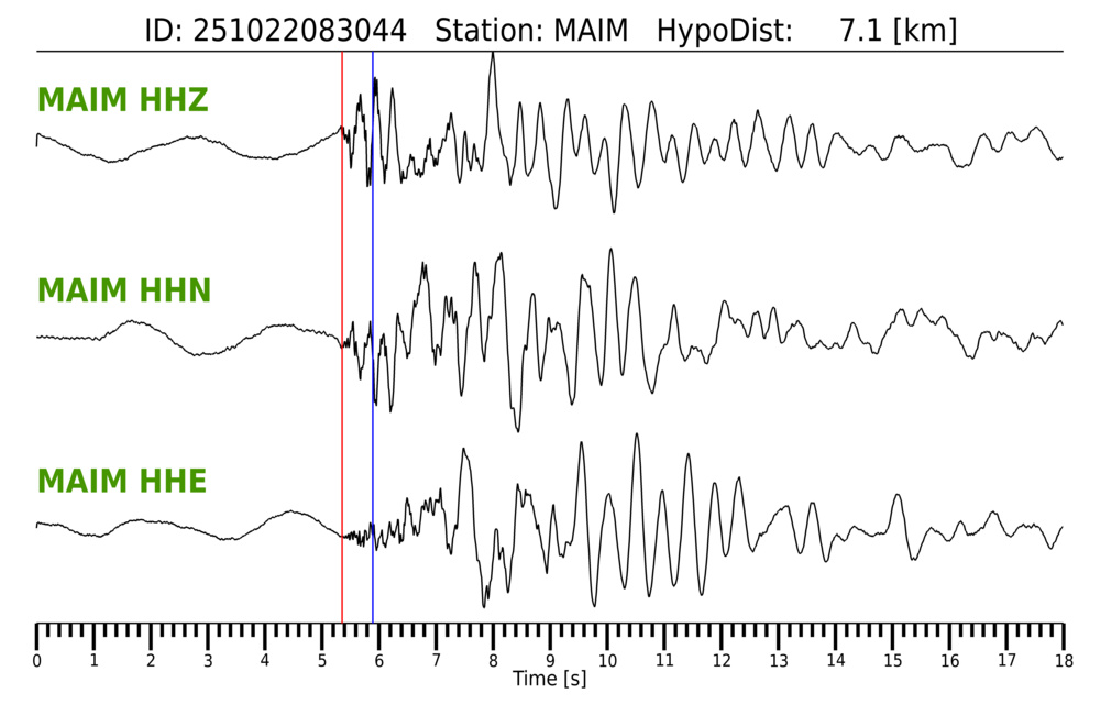 Erh: 2.1 km, Erz: 3.6 km, Nf: 8, Gap: 152°, Rms: 0.065 s